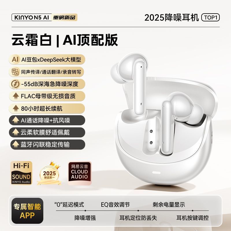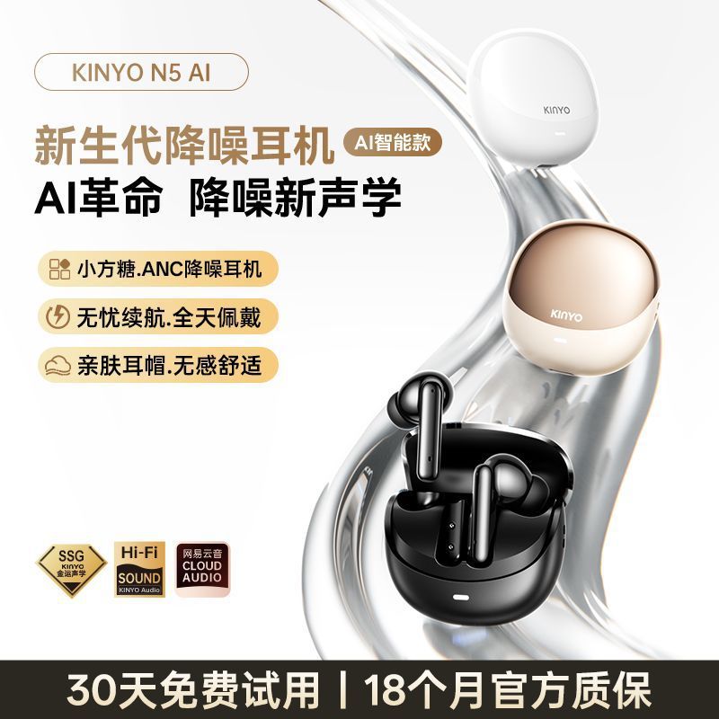 Fone de ouvido Jinyun N5. Bluetooth 5. Cancelamento intenso de ruídos até -55dbA. AI integrada para Tradução de idiomas.